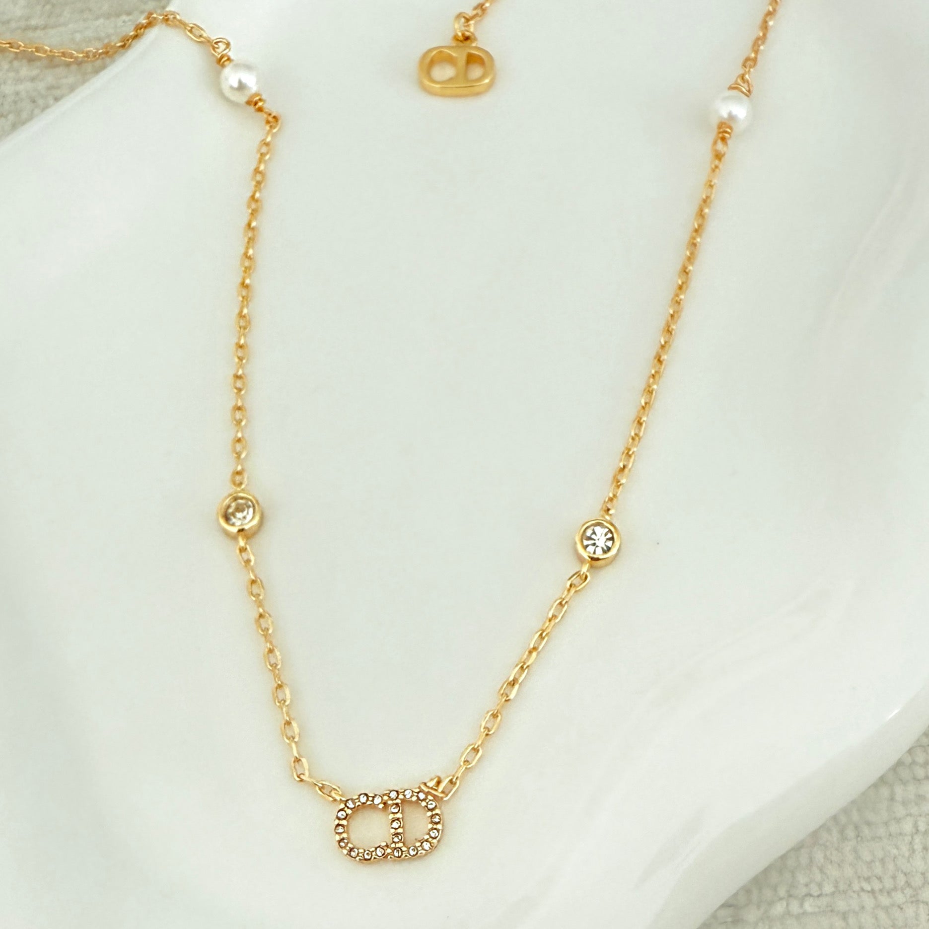 The Fiona necklace beautifully combines lustrous pearls with sparkling stones, creating an elegant accessory that enhances any outfit. Its delicate design offers a timeless touch, perfect for adding subtle sophistication to your everyday look or special occasions.