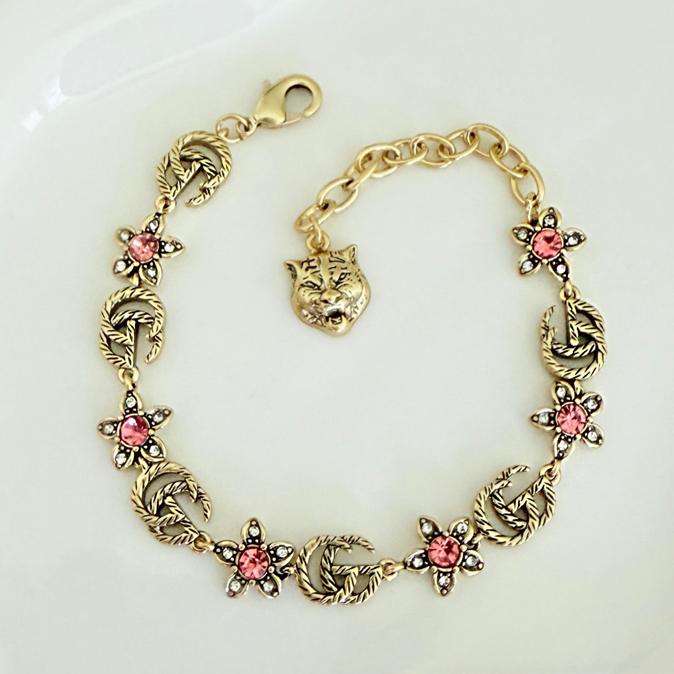 The Mira bracelet features delicate pink flower accents that bring a gentle touch of nature to your wrist. Its elegant design complements any outfit, offering a subtle yet charming statement.