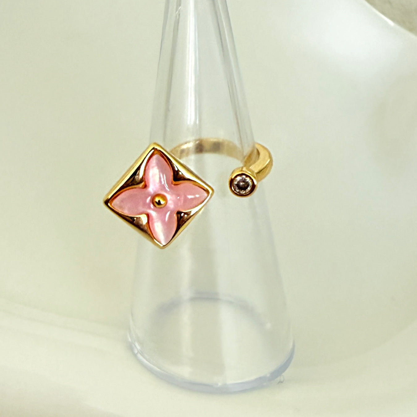 The Zola ring features a delicate pink flower design accented with a small sparkling stone, adding a touch of elegance to your everyday look. Its charming detail makes it a perfect piece to brighten your style with subtle beauty and grace.